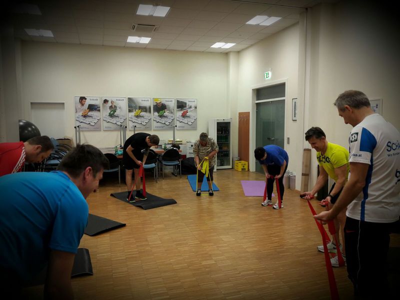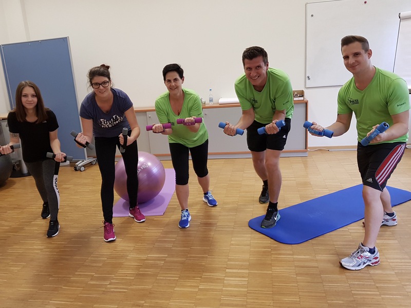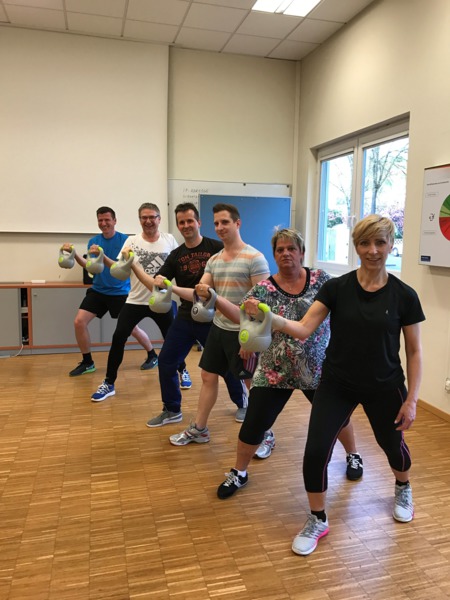 Einmal wöchentlich gibt es für die Mitarbeiter nach Dienstschluss die Möglichkeit unser ausgewogenes Fitnessprogramm zu besuchen. Sie brauchen das Gebäude nicht verlassen, keinen Parkplatz suchen und genießen den Komfort am Arbeitsplatz ein "Fitnessstudio" zu haben.